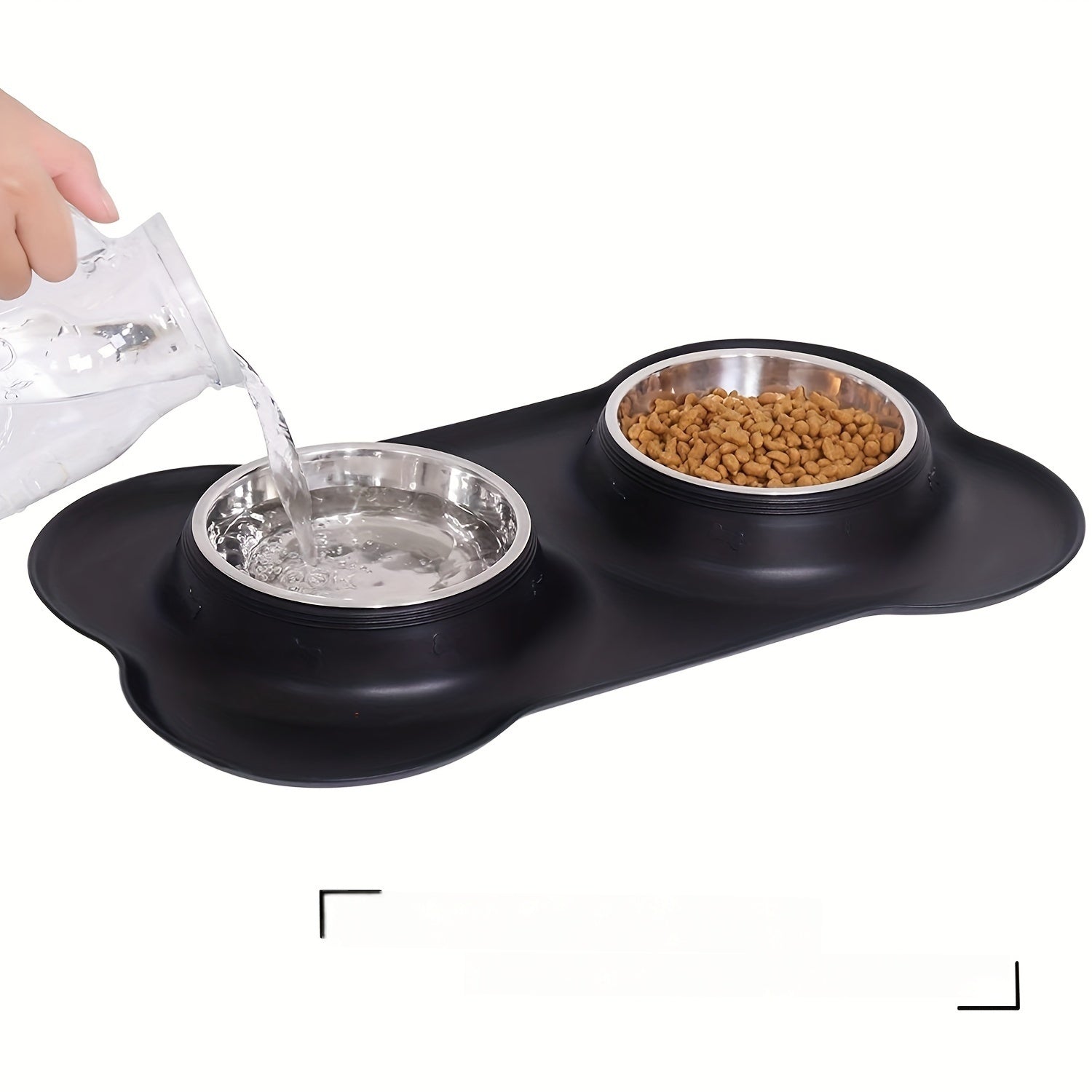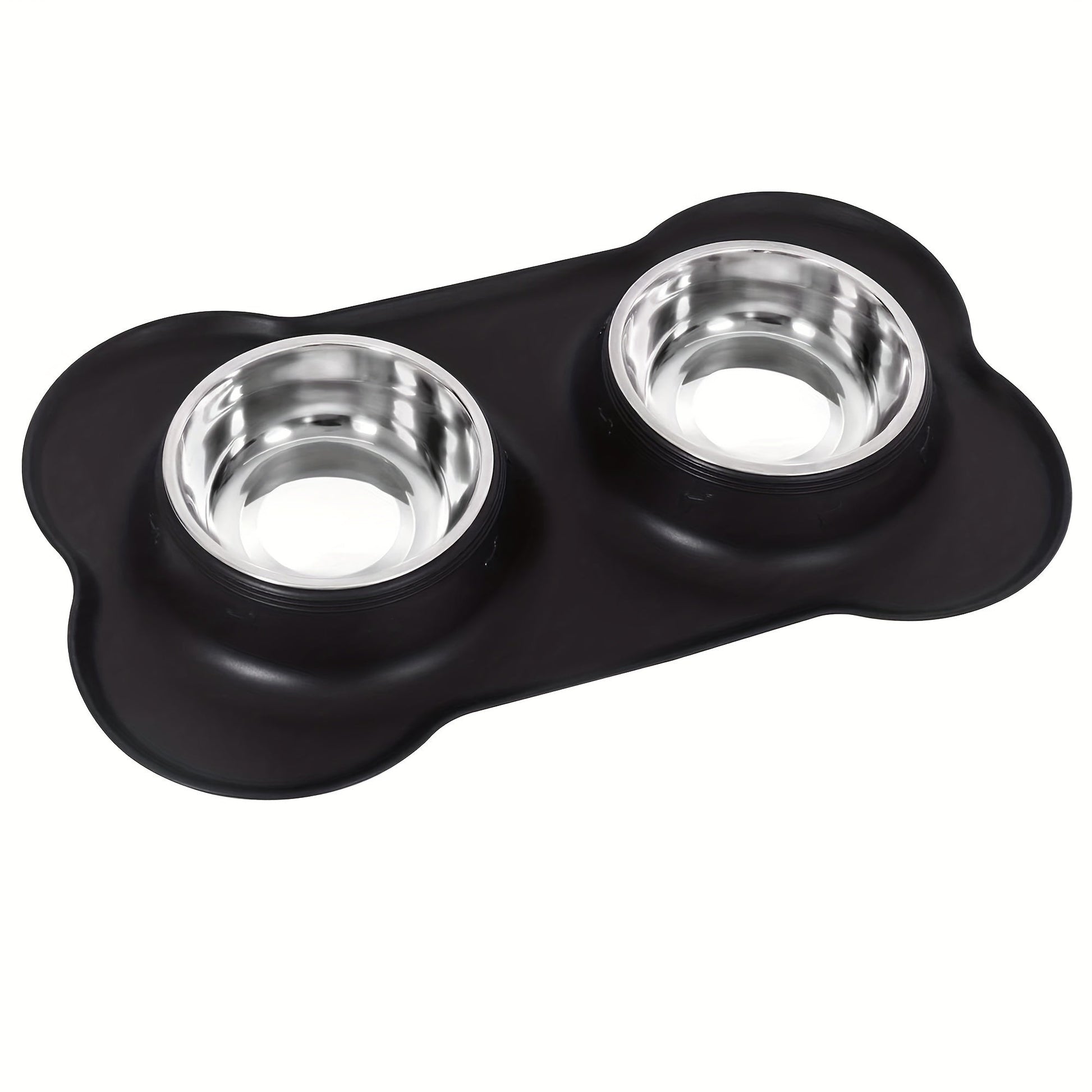 2-in-1 Dog Feeding & Watering Station, Thermoplastic Rubber Pet Bowl Mat with Stainless Steel Dual Bowls, Anti-Spill Pet Feeder, Includes Bowl Holder, Ideal for All Dog Breeds